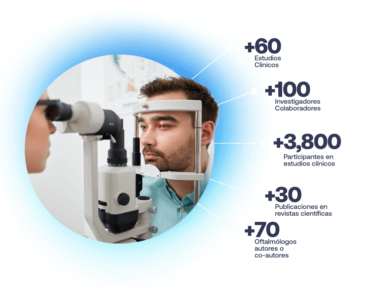 Desde nuestros inicios, hemos realizado más de 60 estudios clínicos en colaboración con más de 100 investigadores. Los resultados de estos estudios han dado lugar a más de 30 publicaciones en revistas científicas, promoviendo la difusión de conocimiento y avanzando en la investigación oftálmica.